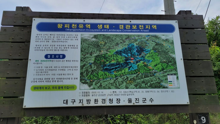 • 결과: 2005년, 환경부는 울진군 서면과 근남면, 영양군 수비면 일대의 약 102.84㎢ 면적을 ‘왕피천 생태·경관보전지역’으로 지정했습니다.