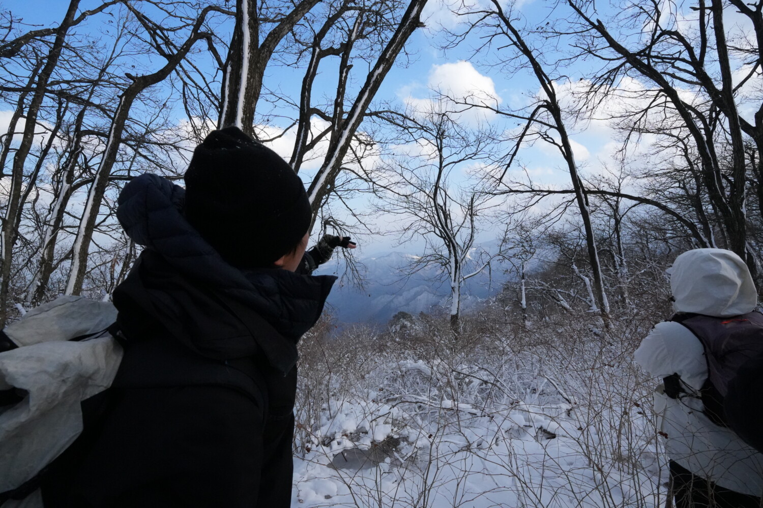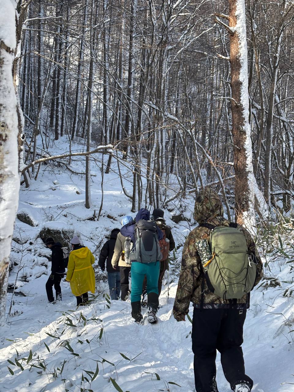 바람에 눈이 쌓인 구간에서는 때로는 무릎 언저리까지 발이 푹 빠졌다. 하산길은 산을 걷는다기보다 산에 몸을 맡긴 채 미끄러지며 내려오는 느낌에 가깝다. 안전을 고려해 정상 직전에서 모두 하산을 결정했고, 정상은 다음을 기약하게 되었다.