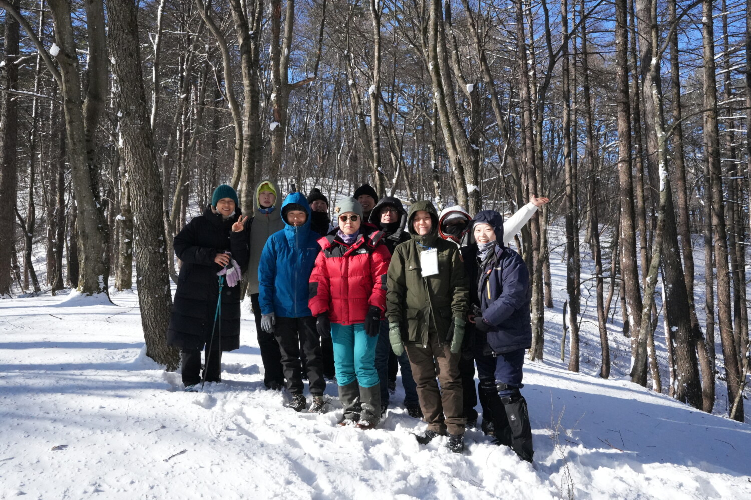 첫날 오른 석병산은 폭설 이후라 등산로 상황이 좋지 않았다. 눈이 가득 쌓여 계단의 형태조차 보이지 않았고, 자주 미끄러졌다. 등산화로 눈길을 쓸어내리자 갈색빛 일본잎갈나무 잎들이 모습을 드러냈다.