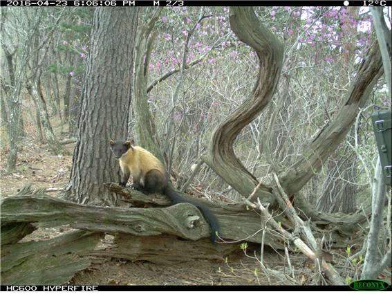 무인센서카메라에 포착된 산양(천연기념물217호/멸종위기1급), 삵(멸종위기2급), 담비(멸종위기2급)