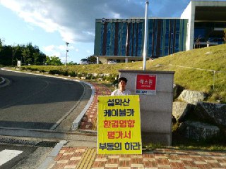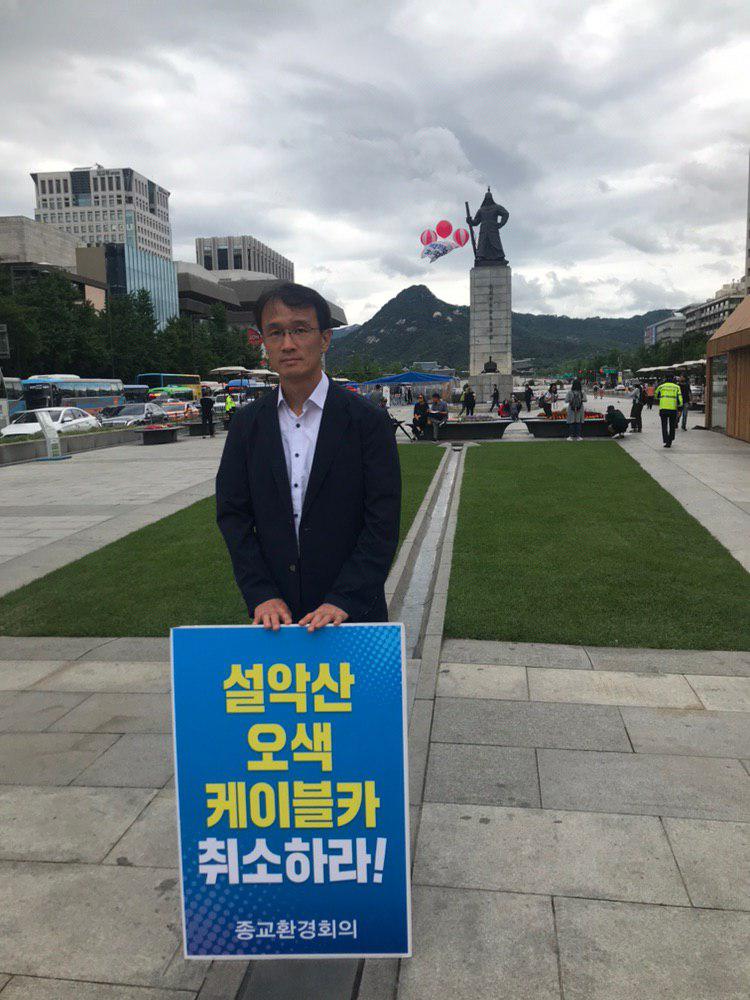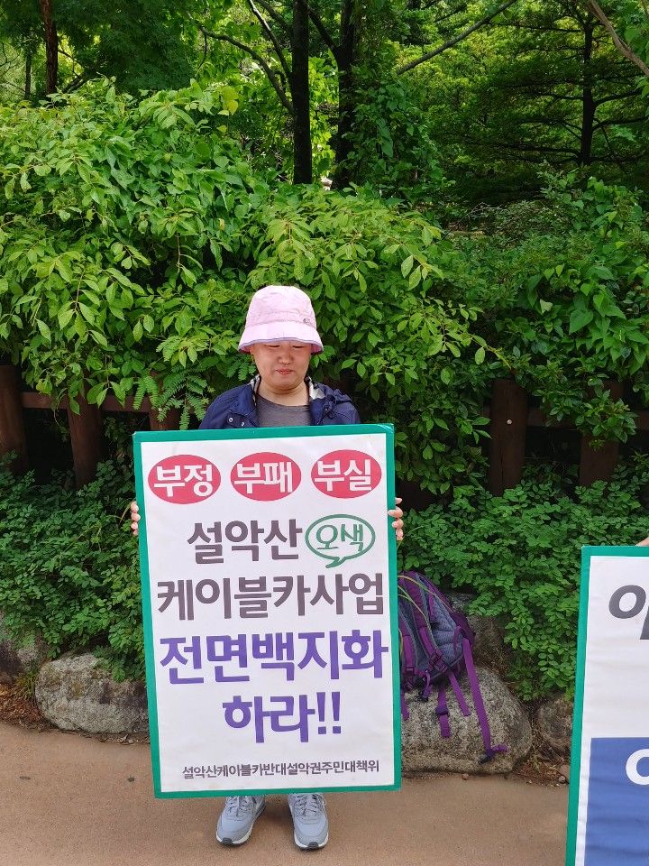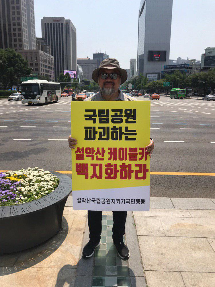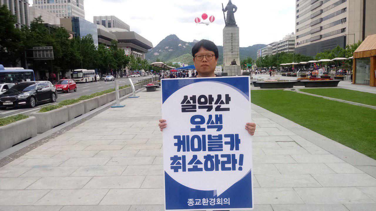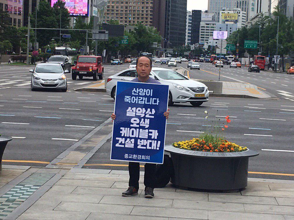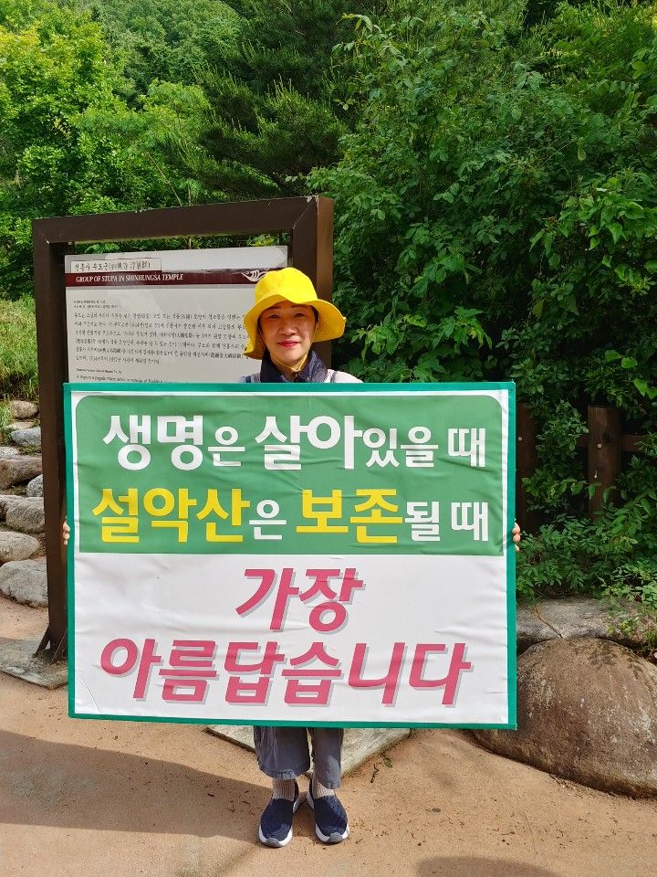 매일 점심시간을 쪼개 피켓을 들고 설악산 케이블카 사업의 부당함을 알리고,