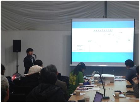 제주 강정마을 해군기지 사례를 발표하고 있는 제주 환경운동연합의 이영웅 국장