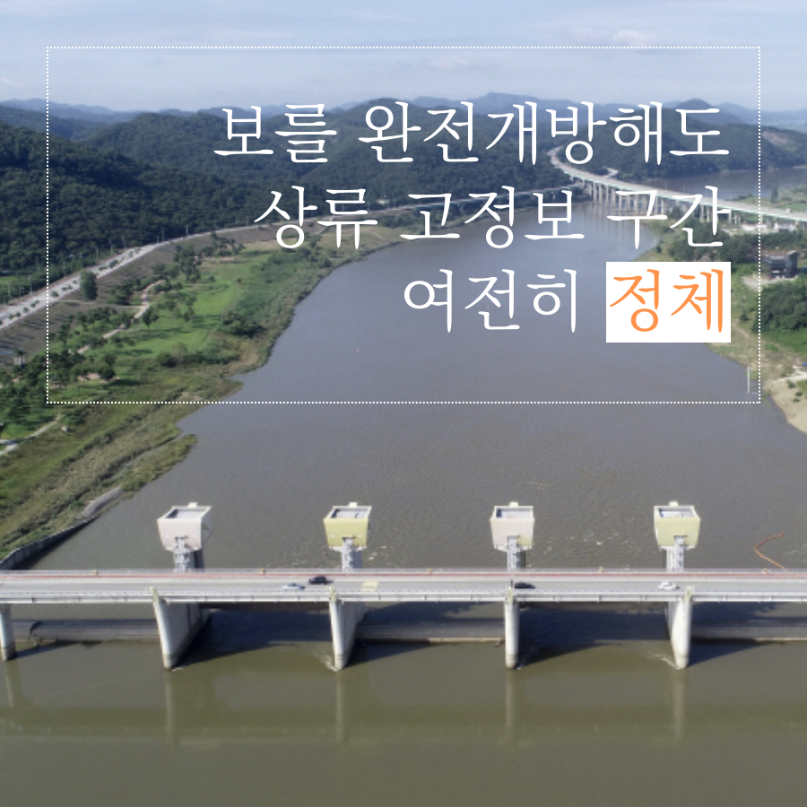 보를 완전히 개방하더라도 고정보 구간이 절반 이상을 차지해 물이 정체되고 물의 흐름을 막아 홍수의 위험이 증가합니다. 또한, 퇴적된 흙으로 인해 생물 다양성이 감소하여 건강한 강이 될 수 없습니다.