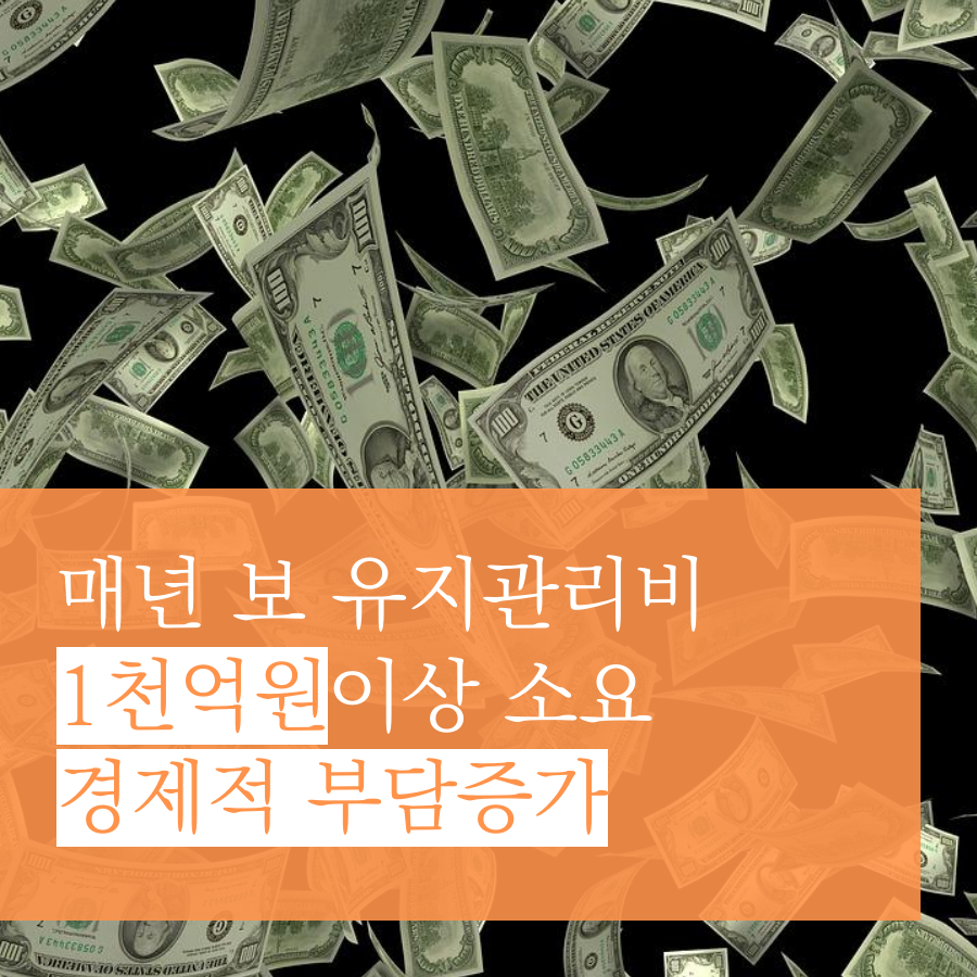 보를 해체할때도 비용이 들겠지만 보를 유지관리하는데에도 매년 1천억원 이상이 소요됩니다. 이는 50년간 약 6조원 이상이 들기 때문에 경제적인 부담을 지속적으로 고려해야합니다.