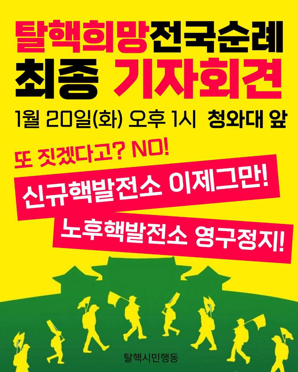 🙌서울로 탈핵순례단이 들어오는 19일과 20일, 함께 청와대로 향해주세요. 노후 핵발전소 수명연장, 신규 핵발전소 추가건설 이대로 안된다는 목소리를 정부에 함께 외쳐주세요🙅