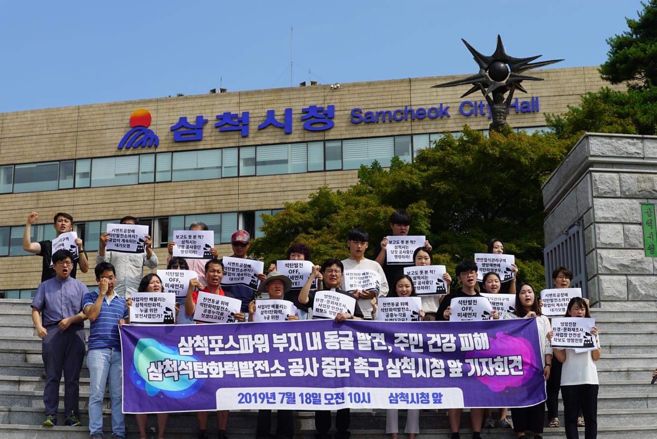 잘 알려진 것 처럼, 삼척포스파워 부지에서 지난 해 두 개의 동굴이 발견됐다. 세 번의 보완조사를 포함한 환경영향평가, 문화재지표조사에서는 확인되지 않은 동굴이다. 지정문화재 급, 최소 ‘나’등급에 해당하는 도지정문화재 이상의 가치가 있을 것으로 추정되고 있다. 8개월 만인 지난 7월 10일, 공동조사단이 구성되었고, 10월까지 정밀조사의 필요성을 검토하기 위한 사전조사를 진행하기로 결정했다. 동굴훼손에 영향을 줄 수 있는 공사 중단이 필요하지만 현장에서는 여전히 공사장비가 건설현장을 오가고 있다. 삼척시는 공동조사에 지장을 초래할 공사 중단 명령을 내려야 한다.