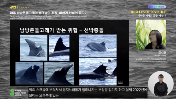 녹색연합은 지난 11월 20일, 2023년부터 다뤘던 ‘자연의 권리’를 2025년에도 주제 삼아 그린컨퍼런스를 진행했다. 올해는 제주 남방큰돌고래 사례와 함께 미국, 아일랜드, 에콰도르 등 세계 각국에서 전하는 자연의 권리 이야기를 모았다.