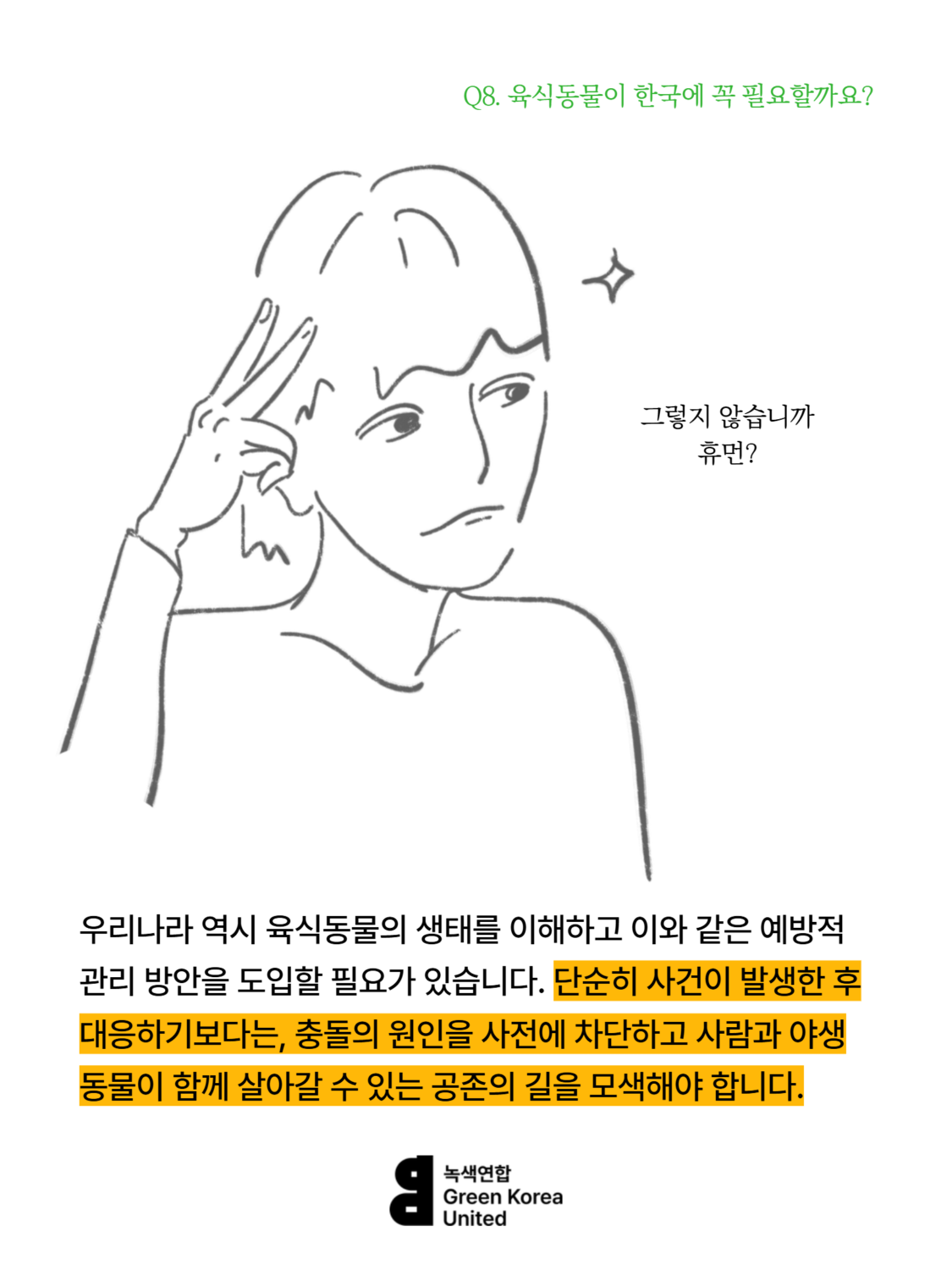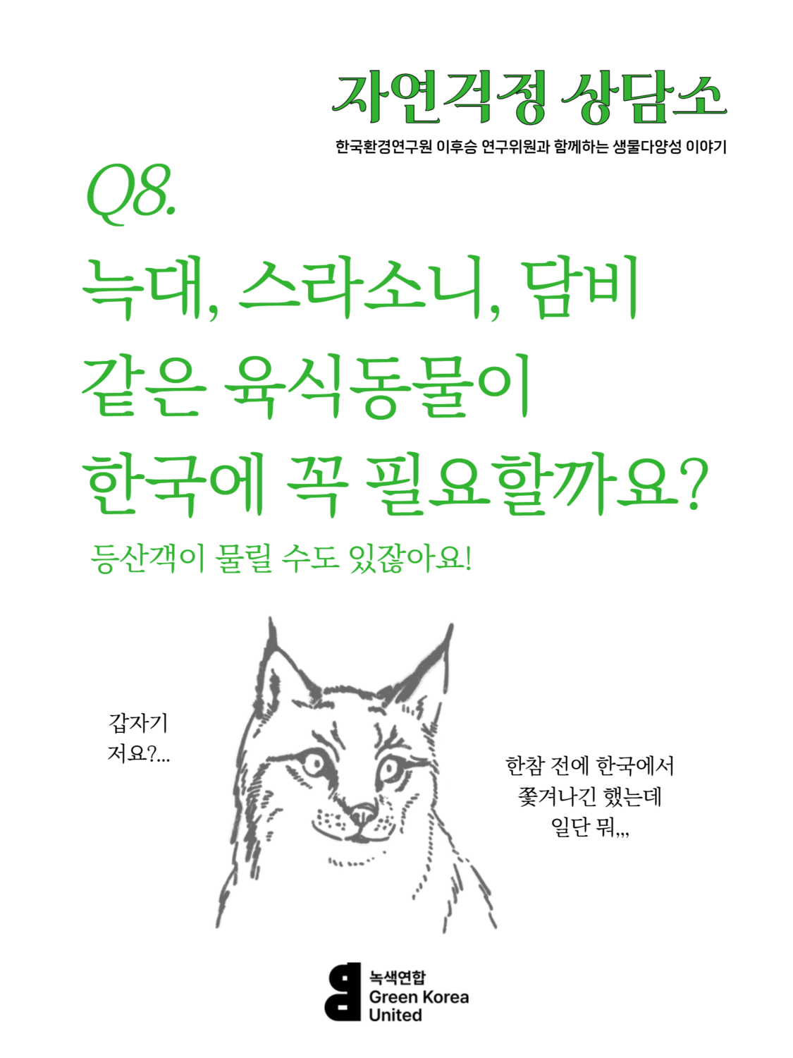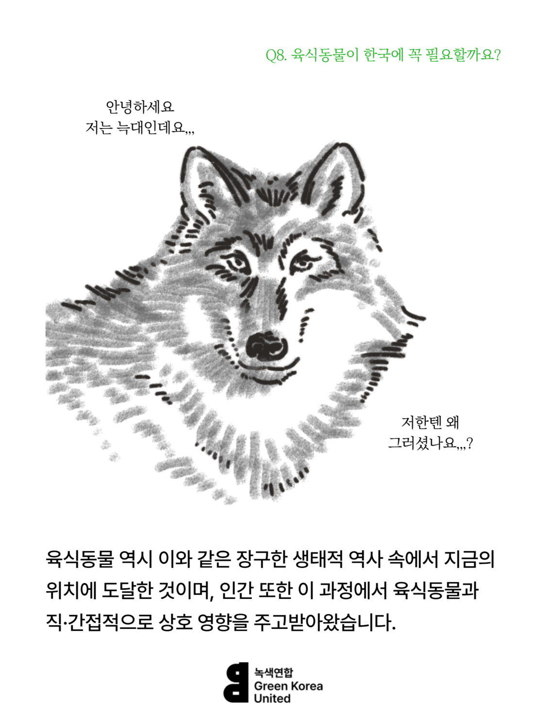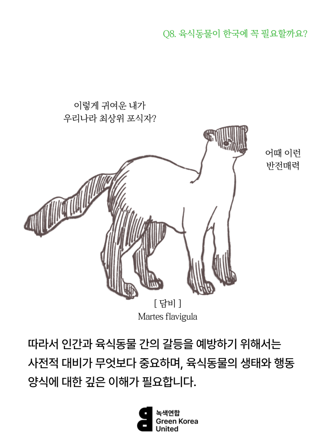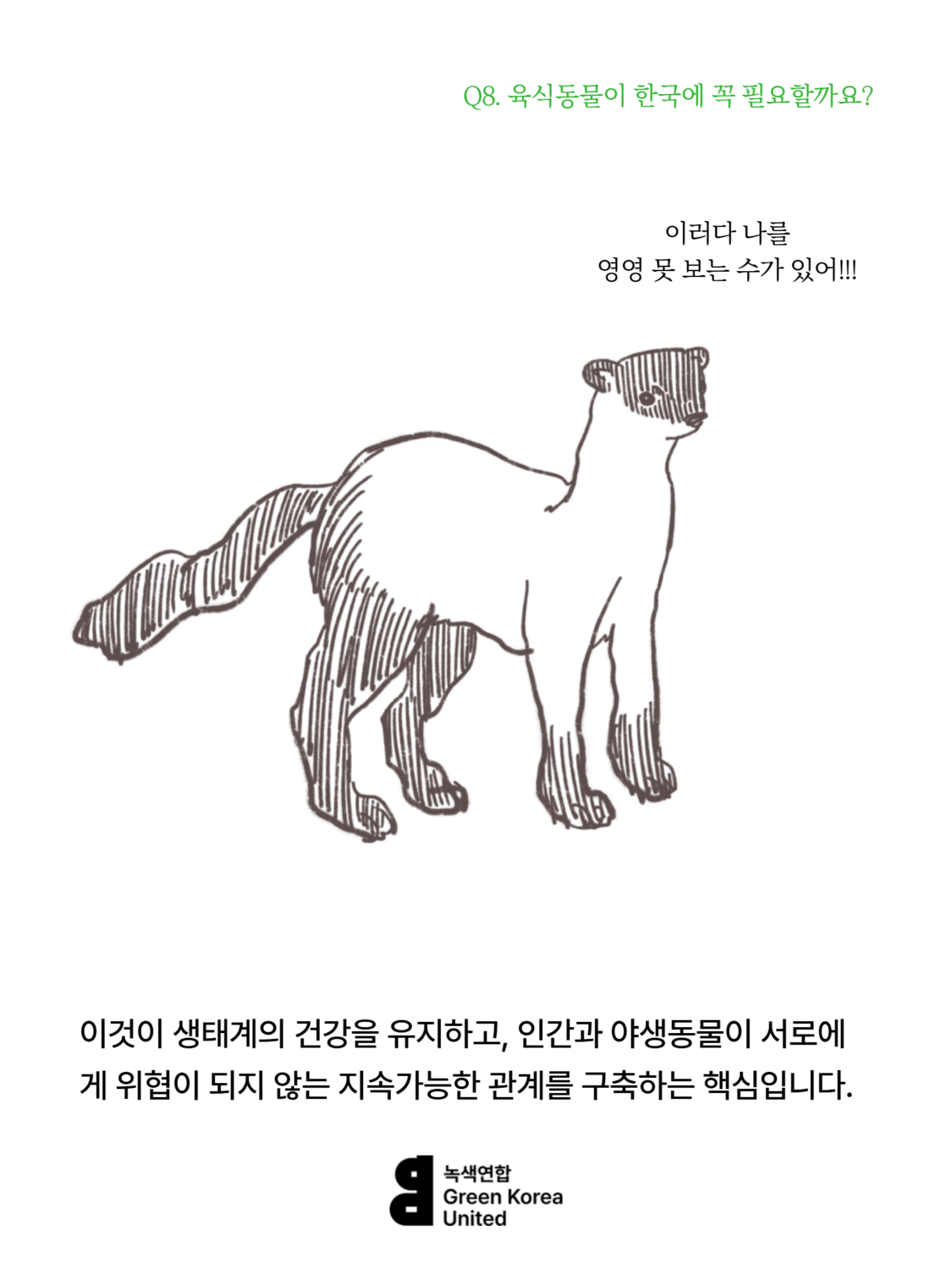Q8. 한국에 늑대, 스라소니, 담비 같은 육식동물이 꼭 필요할까요? 등산하는 사람이 많은데, 육식동물이 사람을 해칠 수도 있잖아요.