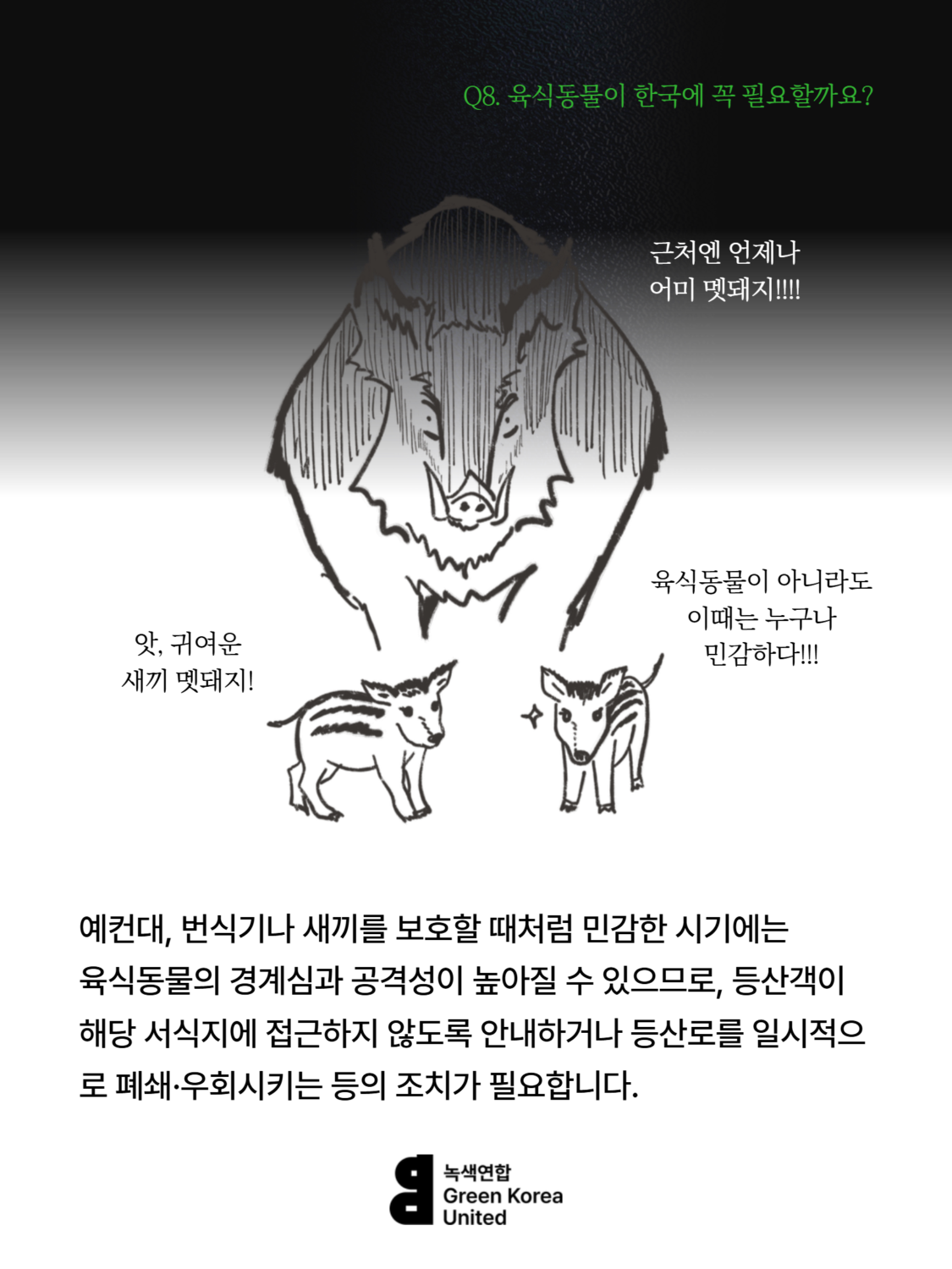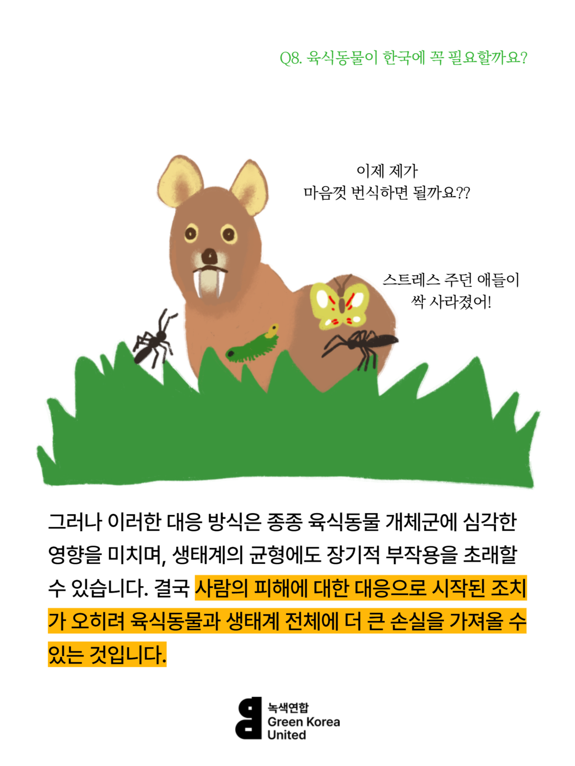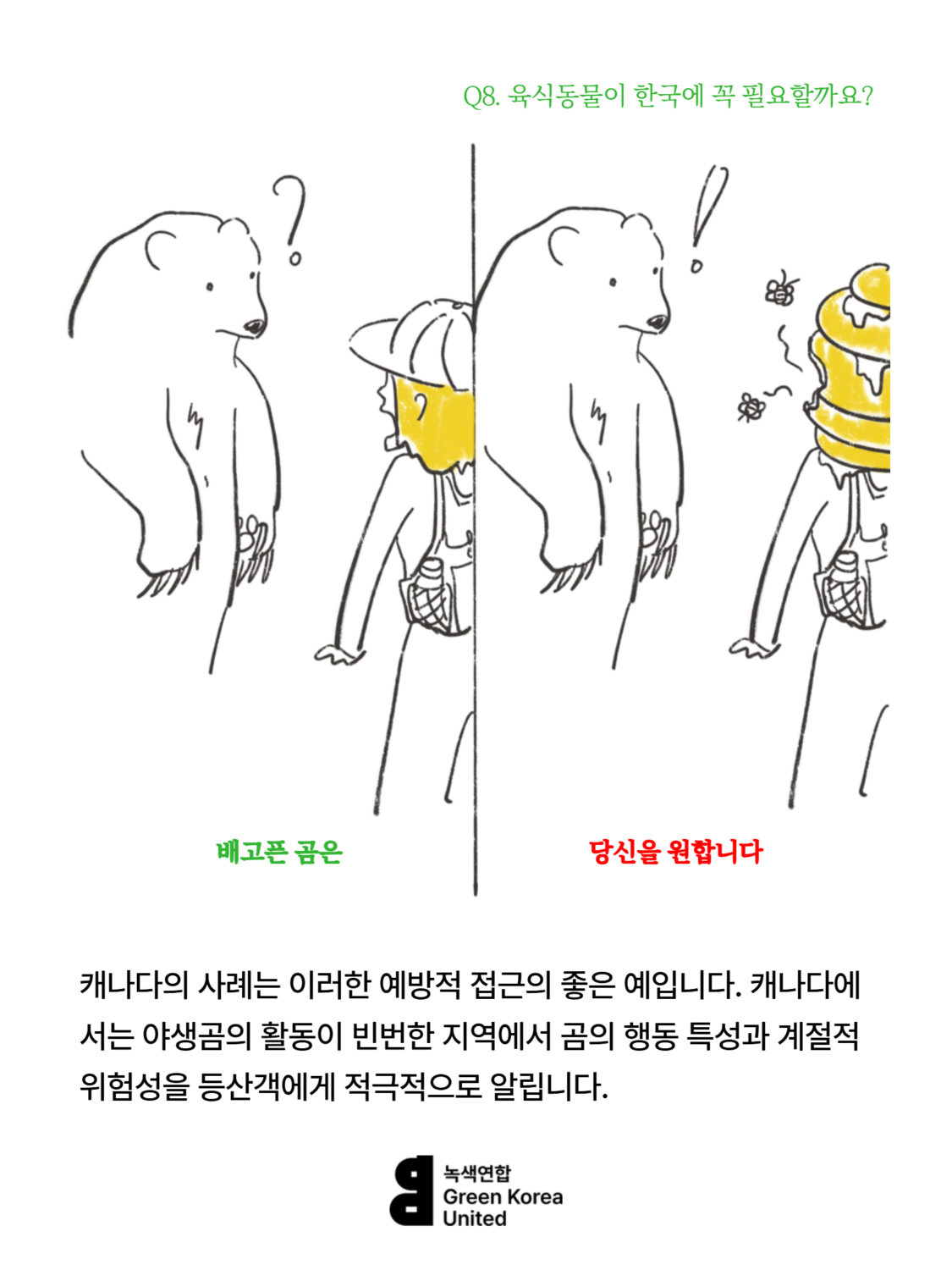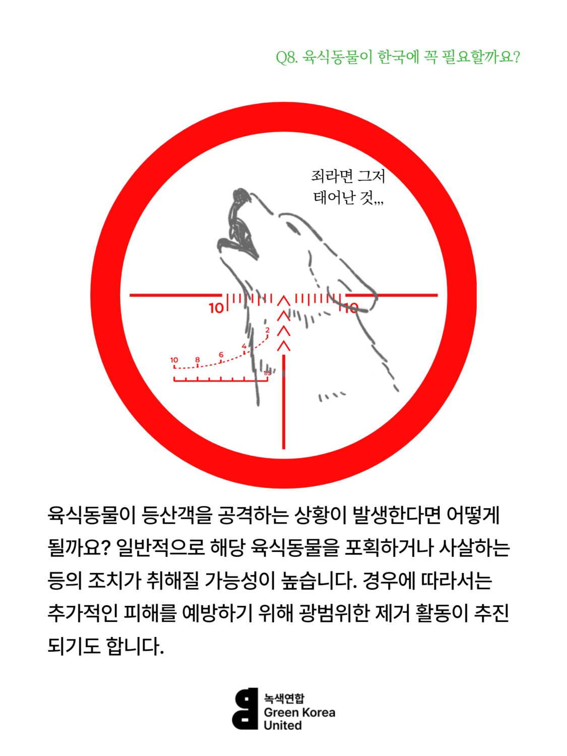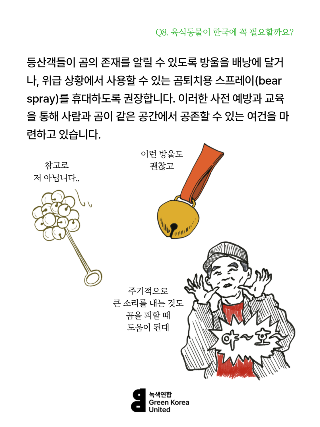 Q8. 한국에 늑대, 스라소니, 담비 같은 육식동물이 꼭 필요할까요? 등산하는 사람이 많은데, 육식동물이 사람을 해칠 수도 있잖아요.