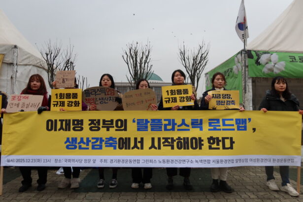 오늘 기후에너지환경부는 탈플라스틱 대책 정부(안)을 발표하고 의견 수렴을 위한 대국민 토론회를 개최한다. 우리는 정부가 준비한 탈플라스틱 로드맵이 실체없는 순환경제나 기술 의존적 대책을 넘어 플라스틱 문제의 근본 원인인 과잉 생산에 대한 대책을 명확히 포함할 것을 요구하기 위해 이 자리에 모였다.