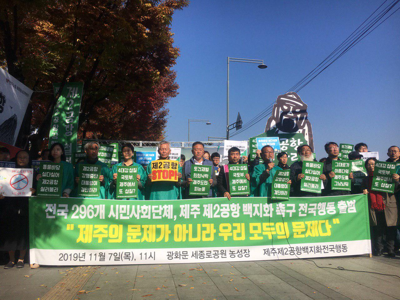 제주 제2공항 건설비 5조원은 전국 1900만 가구가 26만원씩이 나눌 수 있는 막대한 금액이다. 교육, 복지, 환경, 노동 등 사람을 위해 써야 할 5조원으로 재벌의 배만 채울 것인가? ‘사람이 먼저’라더니 왜 피해지역 주민들의 목소리를 철저히 외면하고 도민들의 공론화 요구도 묵살하는가? 제주 제2공항 사업의 부당함을 알리기 위해 가진 것 없는 사람들이 생(生)을 내던지고 있다. 시민 김경배 단식 42일, 김경배 2차 단식 38일, 윤경미 단식 23일, 최성희 단식 24일, 엄문희 단식 42일, 노민규 단식 17일 그리고 시민 박찬식은 오늘 서울농성장에서 단식 8일차를 맞는다. 대통령은 말하라! 대통령은 결단하라! 제주 제2공항 철회하라!