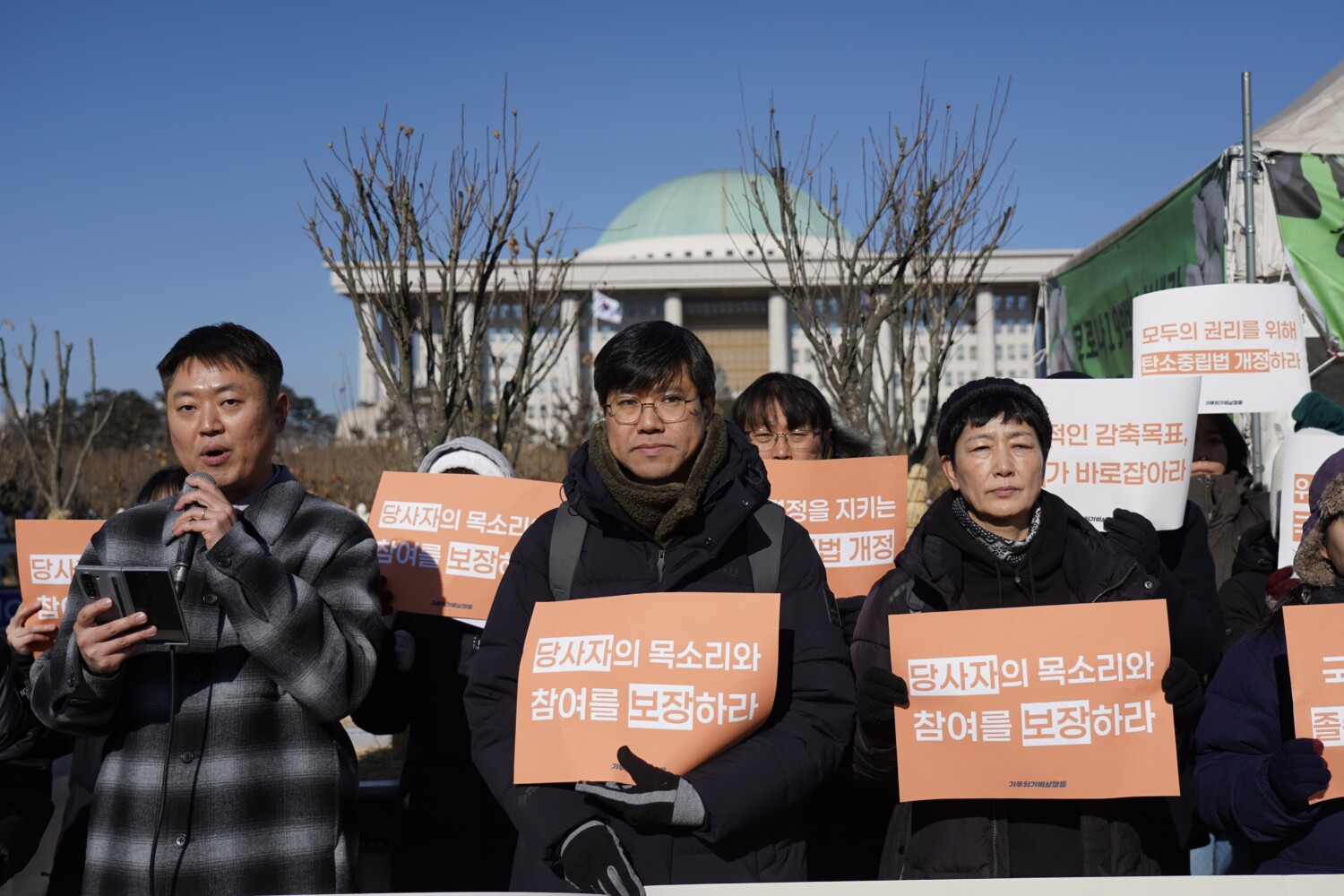 오늘 우리는 절박한 심정으로 국회 앞에 섰습니다. 기후위기는 더 이상 먼 미래의 경고가 아니라, 지금 이 순간 국민의 생명, 건강, 환경을 위협하는 현실입니다. 하지만 헌법재판소의 역사적인 헌법불합치 결정 이후에도, 정부와 국회는 기후위기의 위험으로부터 국민의 기본권을 지키기 위한 실질적인 노력을 방기하고 있습니다. 이에 우리는 헌법적 기준에 부합하는 탄소중립법 개정을 강력히 촉구합니다.