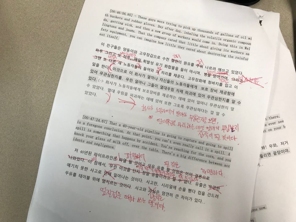 실제 번역을 위한 모임은 지난 토요일 처음 동참했다. 개인 사정으로 한 달간 불참한 후였다. 오랜만인데도 반겨주는 참여자들이 무척 가깝게 느껴졌다. 영화 번역일은 처음이라, 맡은 영화 분량을 나름 여러번 돌려보고 또 여러번 문장을 고쳐 번역해 갔더랬다. 사람들의 여러 의견이 오가고 가끔은 격렬한 토론 뒤에야, 나의 어색했던 ‘번역체’는 멀쩡한 문장으로 다시 태어났다. 가히 만족스럽다. 그러나, 칼로 난도질당하듯 다시 지워지고 쓰여지는 내 문장을 볼 때면, 사실 가끔 얼굴이 화끈거리고 가슴이 쓰라렸다.