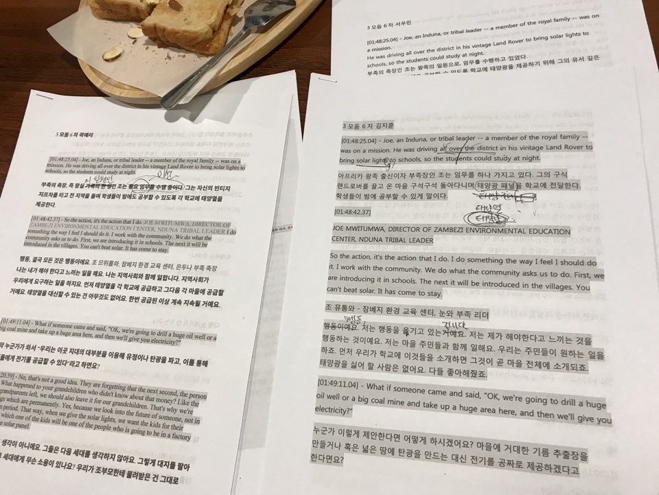 “태풍으로 모두 날아갈 것 같았던 토요일. 그럼에도 번영기 모임은 꿋꿋이 그리고 즐겁게 진행 됐습니다. 이번 모임에서는 각 부분의 번역본을 취합하는 작업을 마치고, 상영회 일정과 장소 등에 대한 이야기를 나눴습니다.어색하고 무더웠던 첫 모임이 어제 같은데, 벌써 마지막 모임만을 앞두고 있습니다. 번역해야 할 영화의 양이 얼마 남지 않았다는 것도 참 신기합니다.