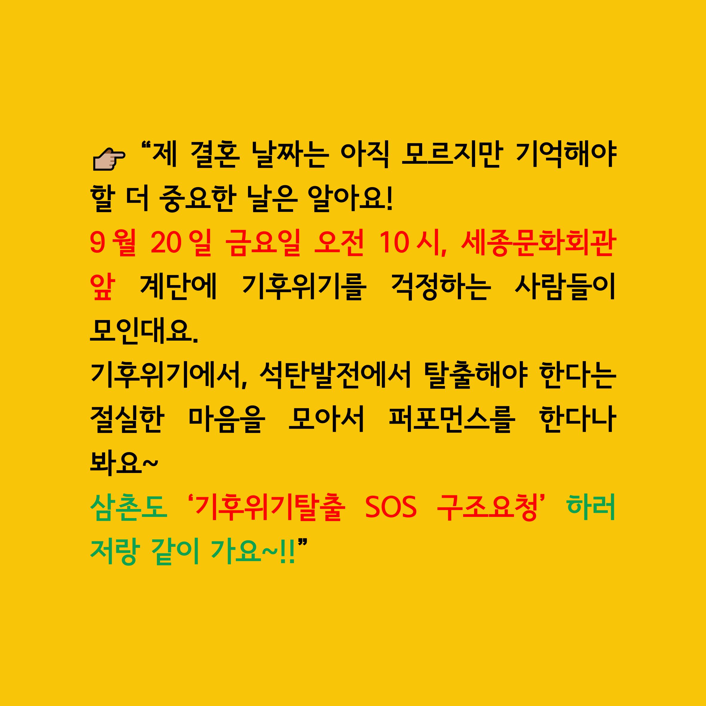 (재미있는 기후위기탈출 퍼포먼스 함께 할 수 있도록 준비해 놓을게요?)
