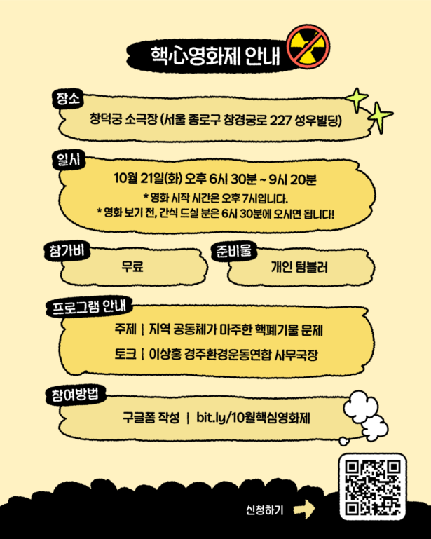 🎙️ 영화를 다 함께 보고 난 뒤, 핵발전소와 핵폐기물처리장이 위치한 경주에서 활동해 온 활동가의 생생한 이야기를 들어봅니다.