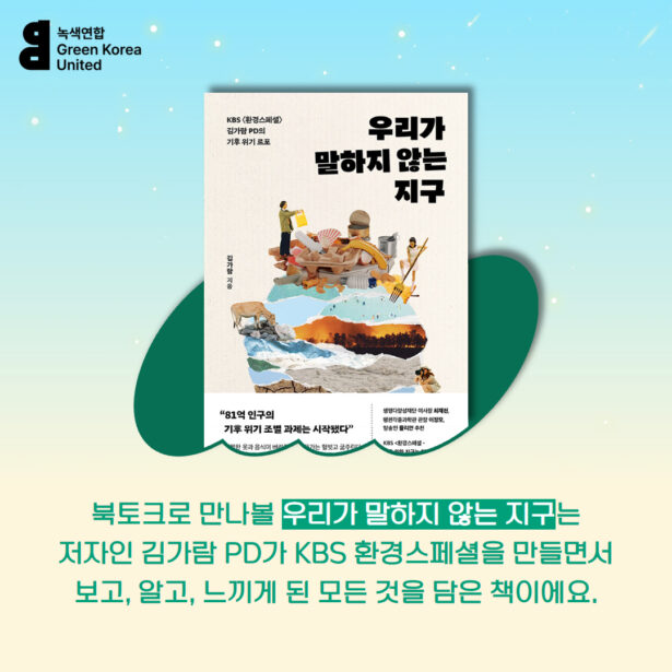 📖책으로 느끼는 녹색의 즐거움, 이번에는 <우리가 말하지 않는 지구> 북토크를 열어요!