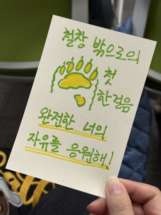 (좌)사육곰의 발걸음을 응원하는 한 참가자의 메시지