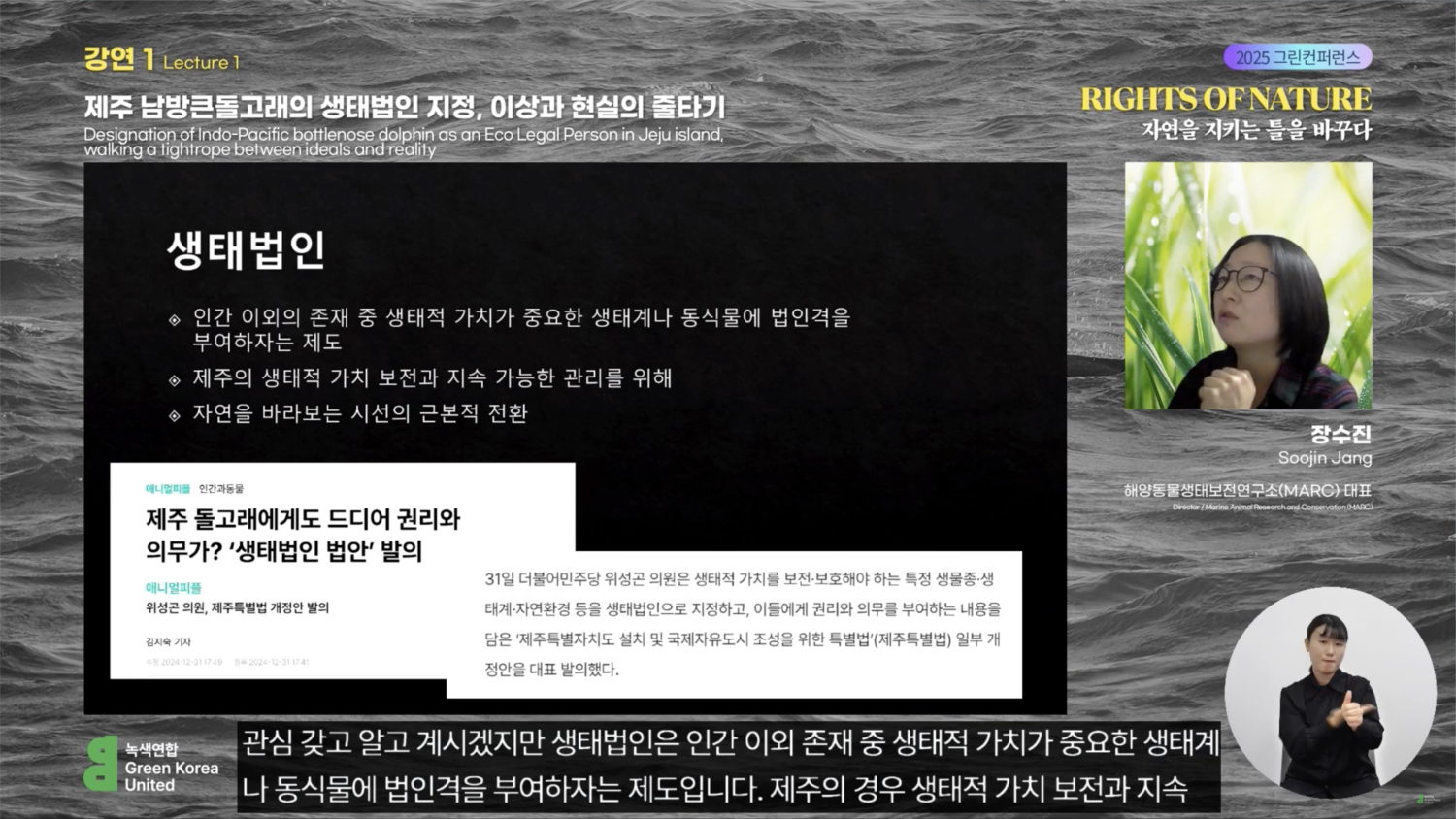 수능 끝난 고3입니다!! 우연히 2025 그린컨퍼런스 <RIGHTS OS NATURE : 자연을 지키는 틀을 바꾸다>를 소셜미디어를 통해 알게 되었습니다. 뜻깊은 특강을 보게 되어 무척 기쁩니다~