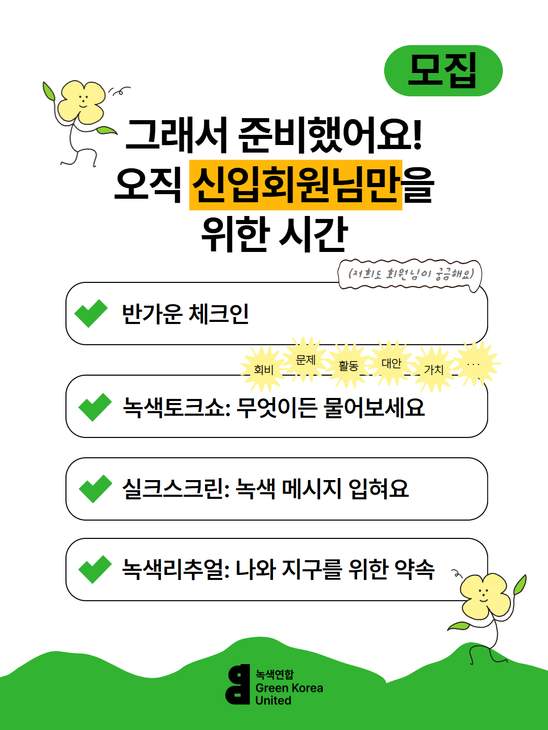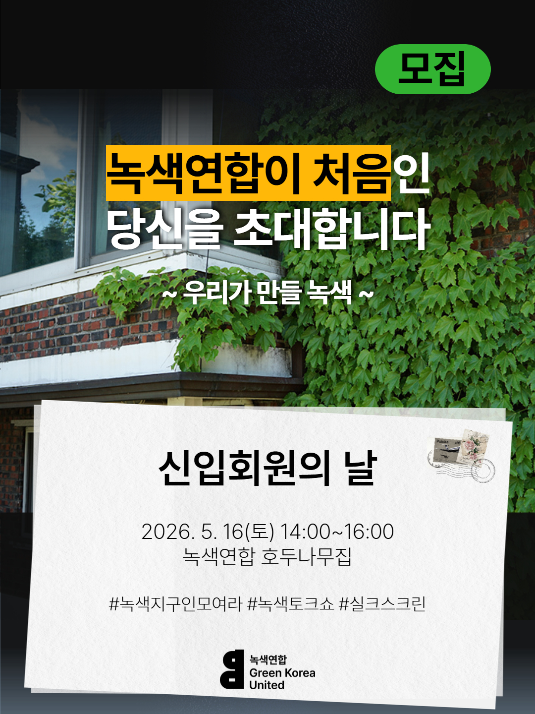 2026년 녹색연합의 첫번째 <신입회원의 날>에 초대합니다.