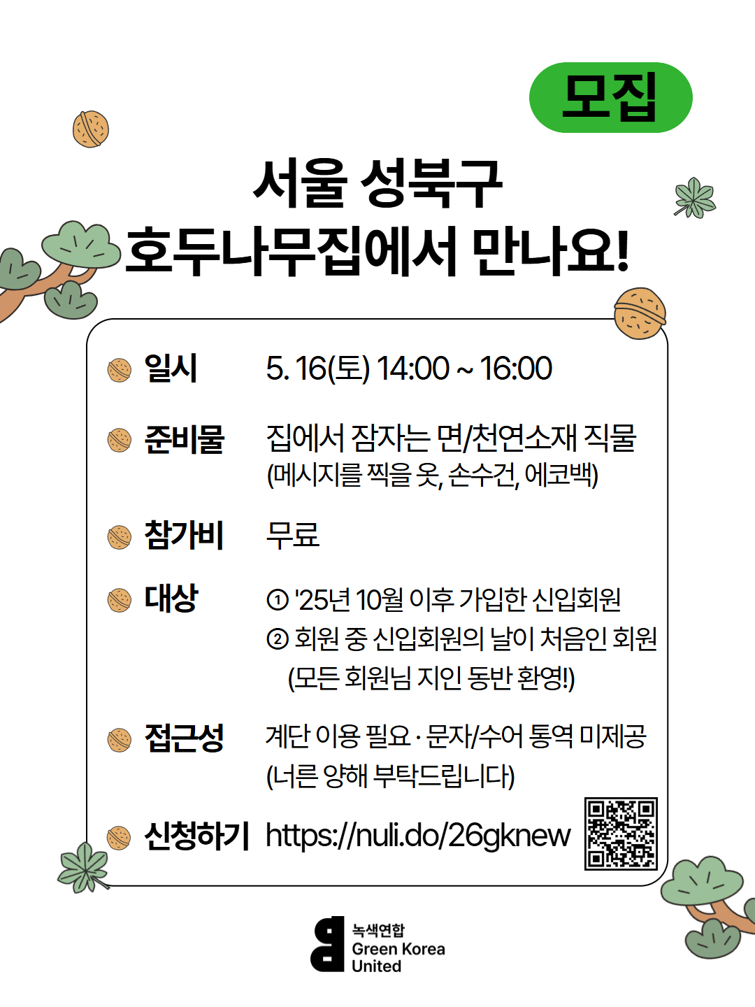 - 장소 : 녹색연합 호두나무집(서울 성북구 성북로19길 15)