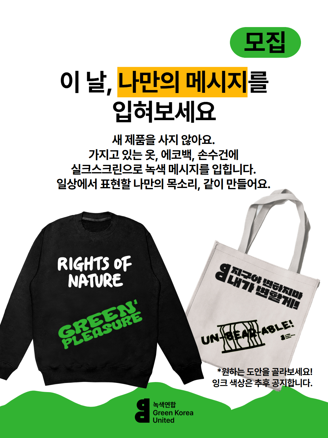 👉 실크스크린 문구(4종 중 택1): un-bear-able / rights of nature / 지구야 변하지마, 내가 변할게 / green pleasure