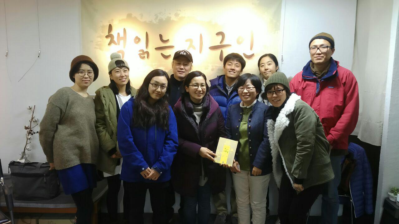 12월 15일 저녁 혜화동의 따뜻한 책방 ‘이음서점’에서 ‘책 읽는 지구인’ 첫 번째 시간으로 박경화 작가를 만났습니다. 책 읽는 지구인은 환경, 생태, 자연, 녹색을 주제로 다룬 책을 함께 읽고 함께 이야기하는 자리입니다. 때때로 책을 쓴 작가도 초대하구요.