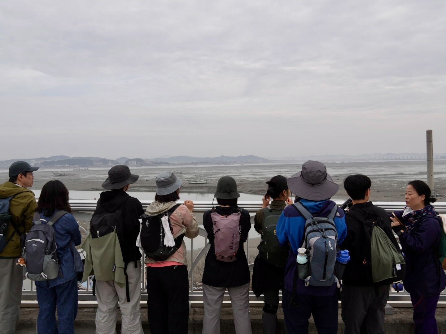 녹색순례 6일차, 머물렀던 군산시 월명동을 떠나 금강 하구둑으로 향했습니다. 전라북도에서 충청남도로 넘어가는 날, 그 경계는 비단처럼 아름답다는 금강입니다. 두 지역을 잇는 다리까지 걷는 동안 강 주변 뻘밭에는 먹이를 찾는 다양한 도요새들과 갈매기의 바쁜 걸음이 이어졌습니다. 자동차 소음이 심한 대로변이지만 꿋꿋이 살아가는 모습이 대견했습니다.