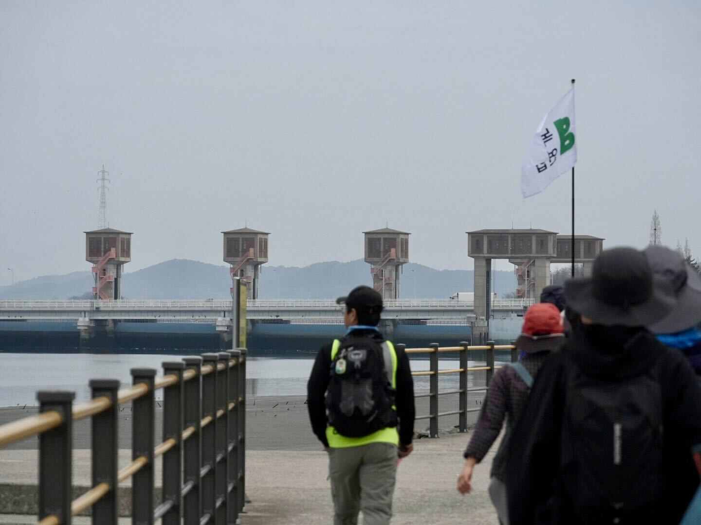 계속 걷다보니 갑자기 강폭이 넓어졌습니다. 금강 하구입니다. 이곳에는 용수를 확보하고 염해 피해를 방지한다는 목적으로 1990년 금강 하구둑이 완공돼 강물과 바닷물이 자연스럽게 섞이는 기수역이 사라지면서 풍부하던 생물다양성이 감소했을 뿐 아니라 주변 동네도 흩어졌습니다. 이곳이 자연스러운 모습을 찾을 수 있는 날은 언제일까요?