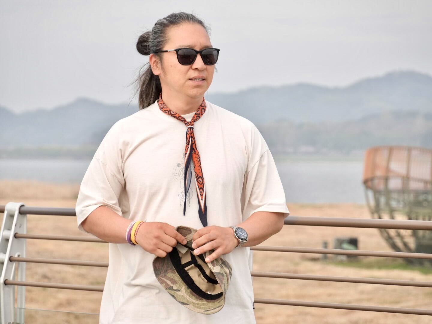 신성리 갈대밭에 도착해 대전충남녹색연합 활동가들을 만났습니다. 임도훈 활동가로부터 금강보 철거투쟁의 전말을 이야기하며 “금강을 순례함으로써 금강과 우리의 관계가 생기면 좋겠다”는 바람을 전했습니다.